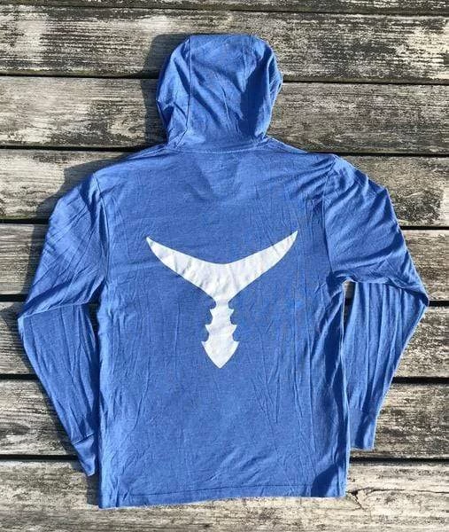 These light weight hoodies are an everyday long sleeve tee with a hood for additional protection from the elements. The tri-blend shirts are crafted with a blend of Polyester, Cotton and Rayon providing a incredibly soft and comfortable feel. These are great for on the water, providing you comfort but still being light enough to feel light in.