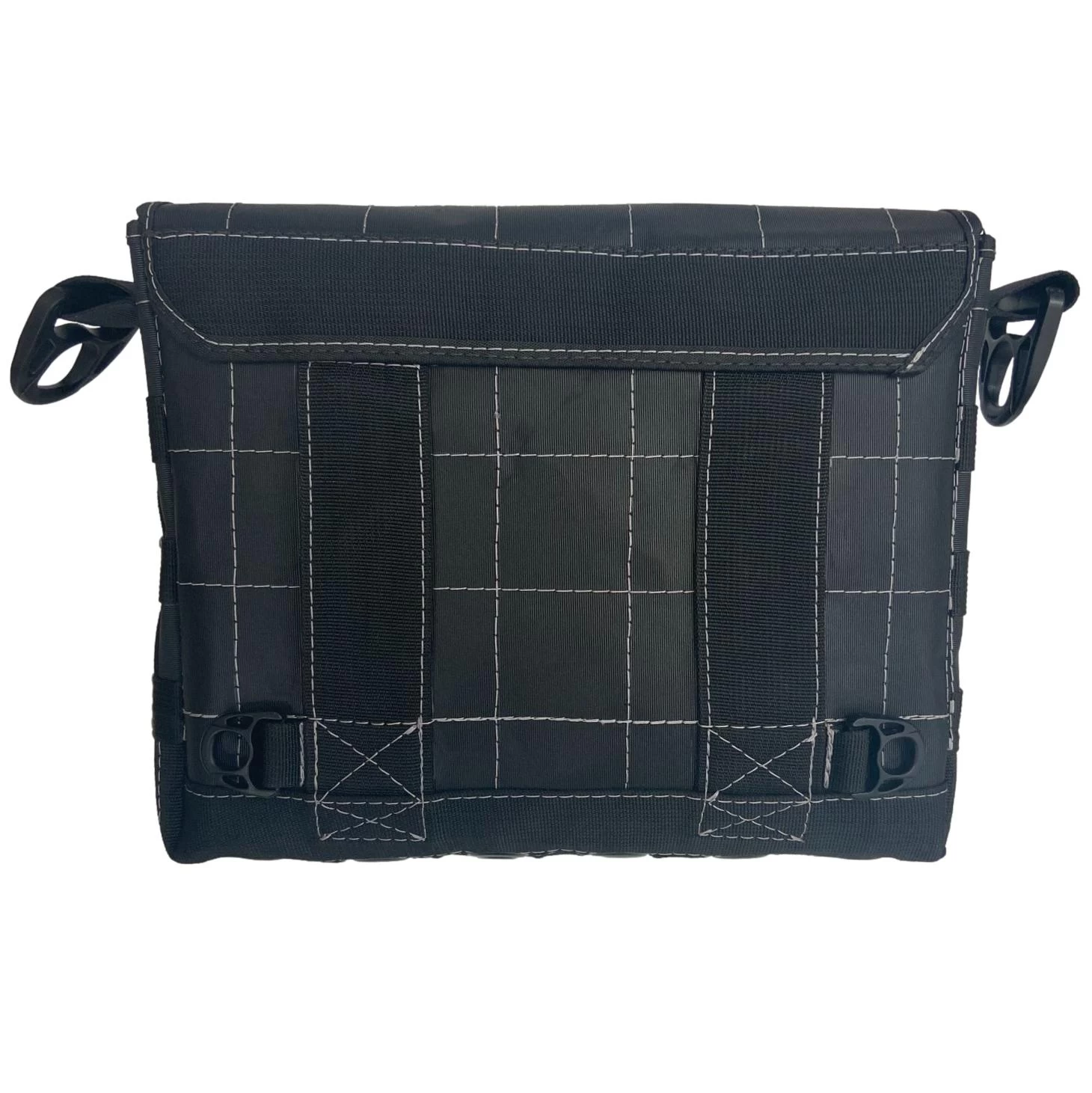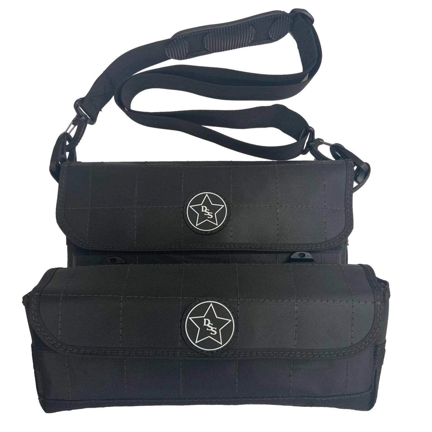 Dark Star bags feature a unique MOLLE attachment system, seen elsewhere in the military & other tactical equipment, which gives quick and easy attachment and removal of accessories and other pieces of gear on the fly. The MOLLE system is a simple and lightweight design that uses a MOLLE “stick” to interlace the webbing of the main bag to the accessory.