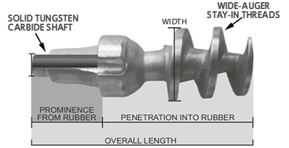 Secure your footing on slimy weed covered rocks and in heavy surf with Grip Studs high-performance boot studs. These durable traction studs with their unique wide-auger shank do not bend, back-out or fold over in the sole like other narrow-threaded studs. Grip Studs feature a tough, solid tungsten carbide core-to-tip shaft and a rust-resistant finish, making them the perfect stud for rockhoppers! The unique installation notches of the Grip Studs design ensure easy installation and removal with the handy power tool. Grip Studs surf fishing studs work in almost any rubber or felt sole and are available in both aggressive and standard sizes ensuring compatibility with your boot sole and optimizing traction based on your surf fishing conditions. Stud size is 9×23.3mm. Stud penetration is 16.5mm leaving 6.8mm of exposed stud from your boot.