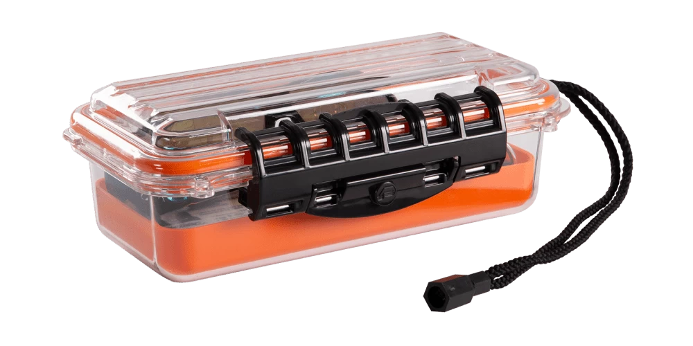 Plano’s Guide Series waterproof cases are an excellent way to protect valuables on the water. Cam-action latches and a Dri-Loc O-ring seal provide an airtight, waterproof environment so your valuables can travel with you worry-free. Rubber feet on the bottom prevent the case from slipping overboard. Even if they go overboard, your phone, wallet, keys, etc.. stay safe in one meter of water for up to 30 minutes.