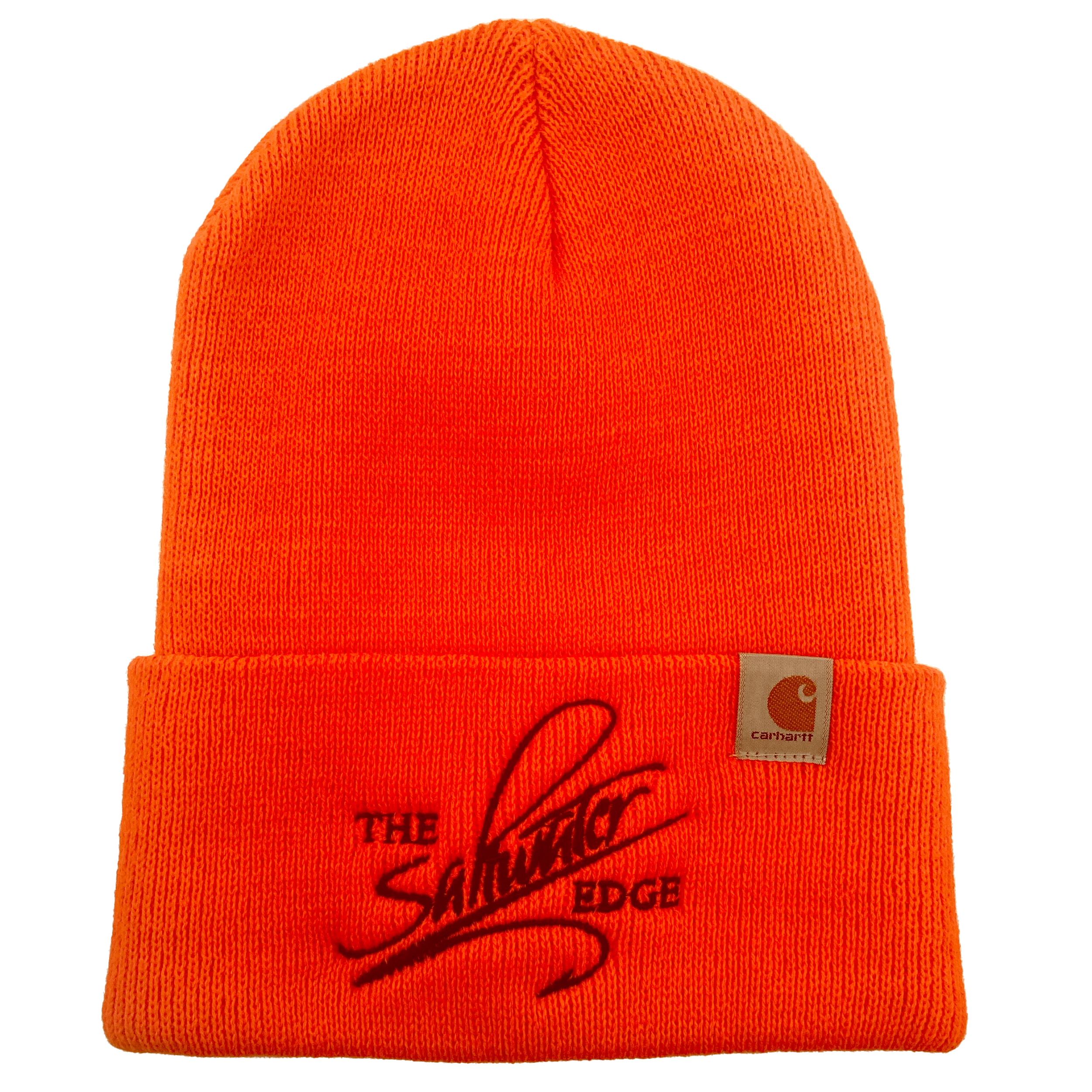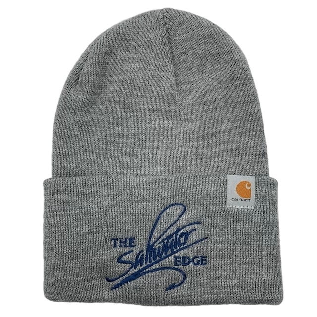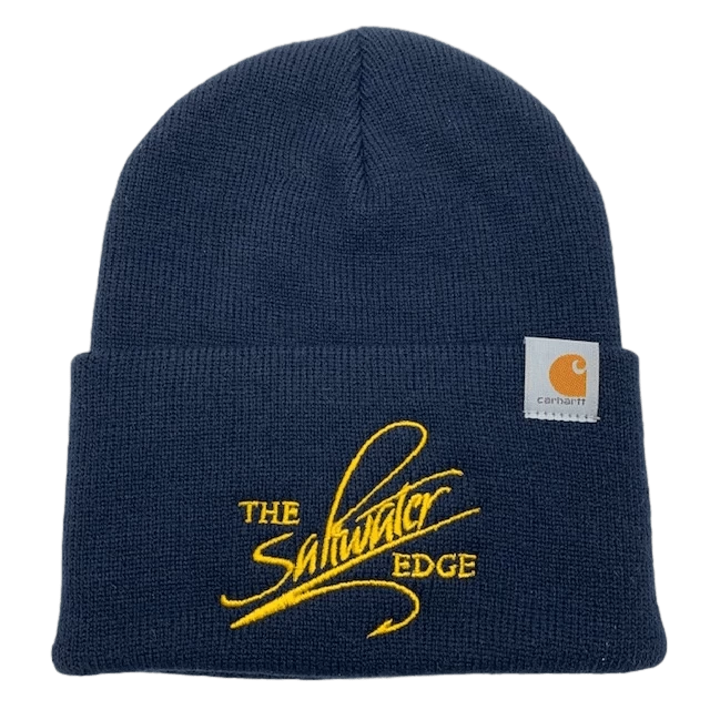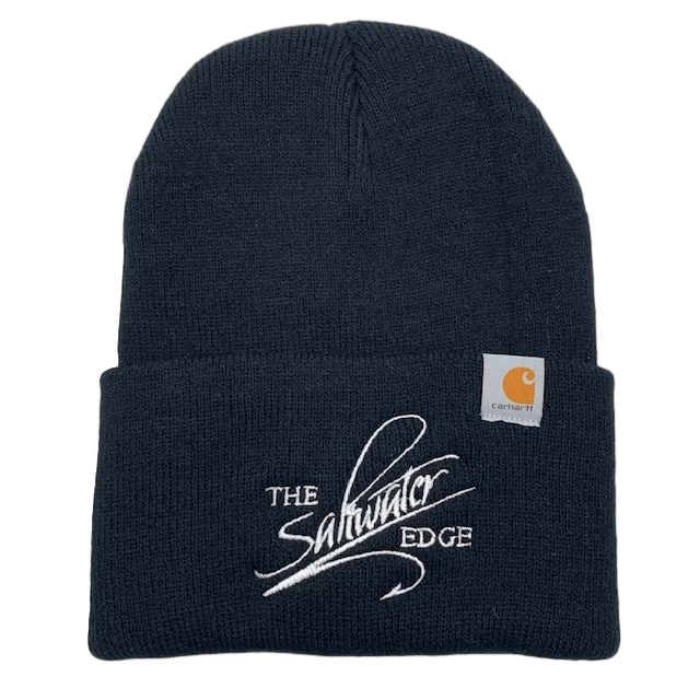 A new, super durable and warm, beanie-style cap from Carhartt, featuring a stitched Saltwater Edge Logo. Stay warm and represent the Edge all winter long in a beanie from a brand we know and trust. Available in three great colors. 100% Acrylic rib knit with a stitched Carhartt logo.
